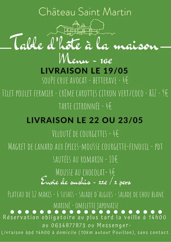 Zoomer 17-05-2020 Voici le menu de cette semaine. Nous pouvons vous livrer samedi maintenant. Sushis et makis au menu du plateau à partager ces 22 et 23/05